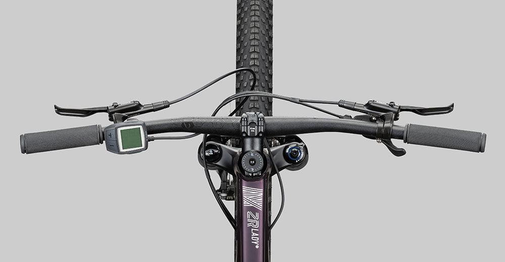 Contrairement à la forme incurvée du tube supérieur des cadres 17″ et 19″, la plus petite taille du ZR Lady Hybrid possède un tube supérieur droit et incliné. Cela permet à la taille de cadre avec 15″, en plus de la rigidité accrue et le retrait plus facile de la batterie, également une entrée plus confortable.